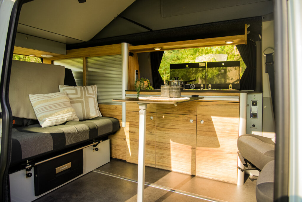 Je kunt bij ons kiezen uit diverse kleuren en materialen voor het interieur van jouw camper, zodat je deze geheel naar eigen smaak kunt inrichten. Samen creëren we een eigentijdse en unieke buscamper die perfect aansluit bij jouw persoonlijke wensen.